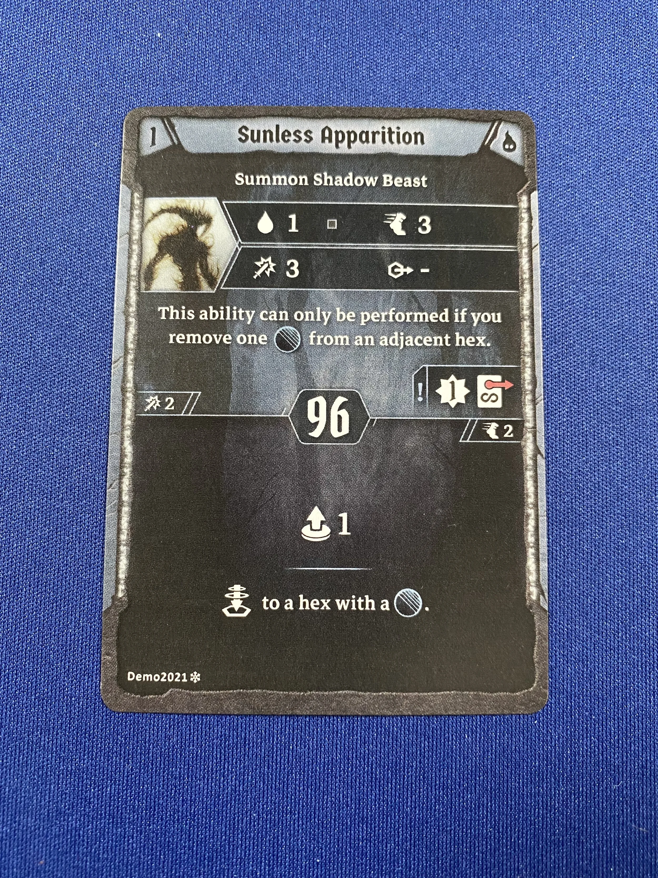 The top half of Sunless Apparition lets you do just that. Consume an adjacent shadow token and you’ve got yourself a summon that can move three spaces and deal three damage. They’re quite squishy, though, with only one HP. So be careful how you deploy them.
