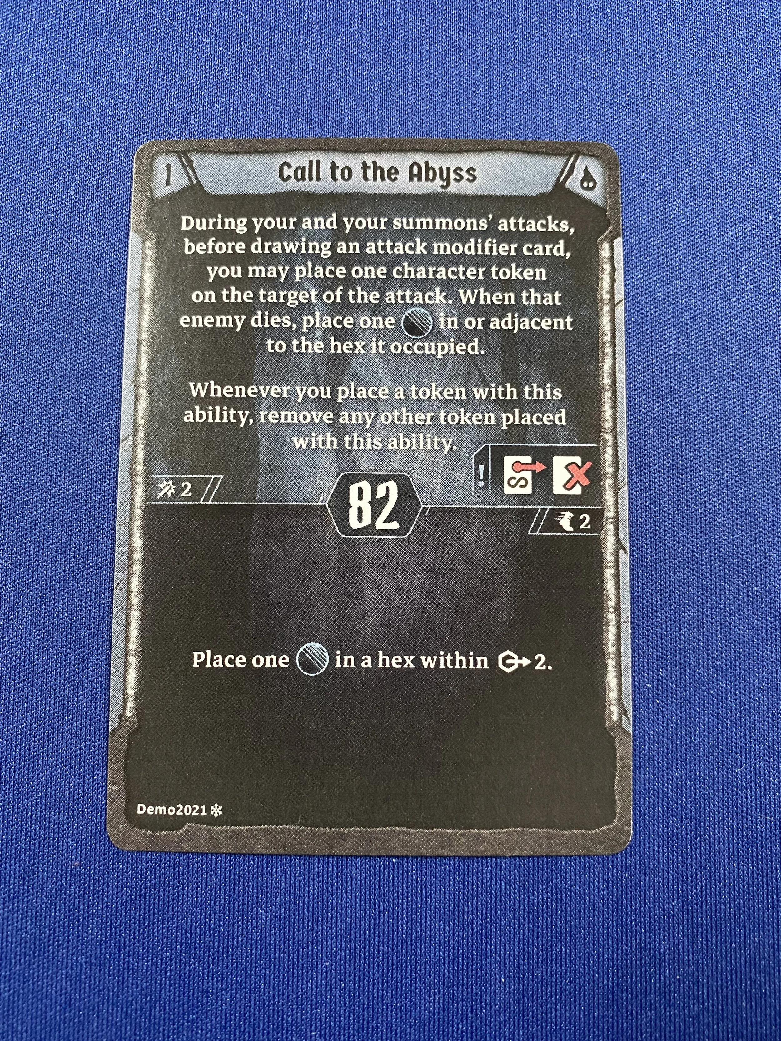 The top half of Strength of the Abyss lets you boost your attack damage, based on how many tokens you’ve currently got out on the map.
